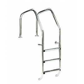 Σκάλα πισίνας από ανοξείδωτο ατσάλι AISI-304L. Είναι κατασκευασμένη από σωλήνα διαμέτρου Ø 43mm x 1,2mm. Παρέχεται πλήρης, με όλα τα εξαρτήματα σε ένα κουτί για εύκολη εγκατάσταση.Τα σκαλοπάτια έχουν επίπεδη, αντιολισθητική επιφάνεια. Προστατεύονται με ένα ανθεκτικό φιλμ που μπορεί να αφαιρεθεί κατά τη διάρκεια της εγκατάστασης...