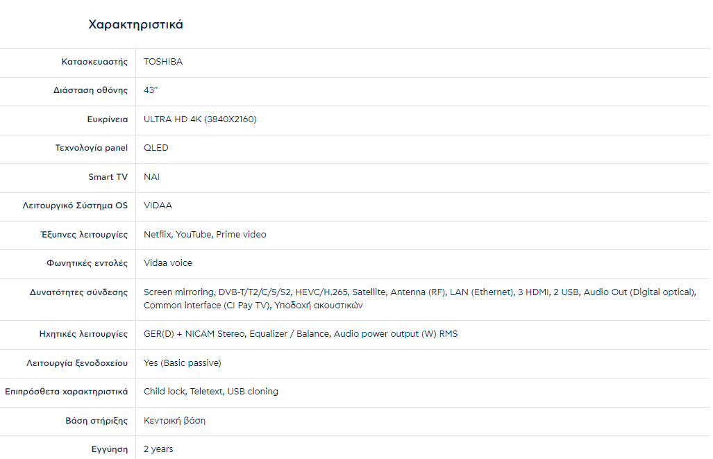 Toshiba TV Vidaa 43" QLED 43QV3363DG