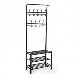Έπιπλο Εισόδου με Κρεμάστρα Μαύρο 69x35x187cmΤο εξαιρετικό αυτό μεταλλικό έπιπλο είναι ιδανικό για την είσοδο του σπιτιού σας. Διαθέτει άγκιστρα 18 θέσεων για να κρεμάτε μπουφάν, παλτό, κασκόλ, ζώνες, τσάντες κλπ. Το κάθε άγκιστρο έχει αντοχή έως και 5 κιλά βάρος. Επίσης διαθέτει και 3 ράφια για να βάζετε εκεί τα παπούτσια σας.Η μεταλλική κατασκευή..